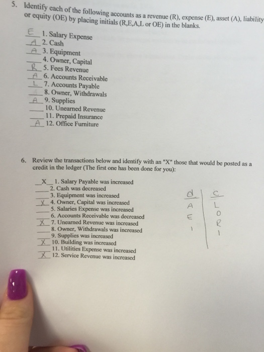 Identify each account as Asset A Liability L or Equity E A. Identify each account as asset A liability L or equity E2. Learn vocabulary terms and more with flashcards games and other study tools.